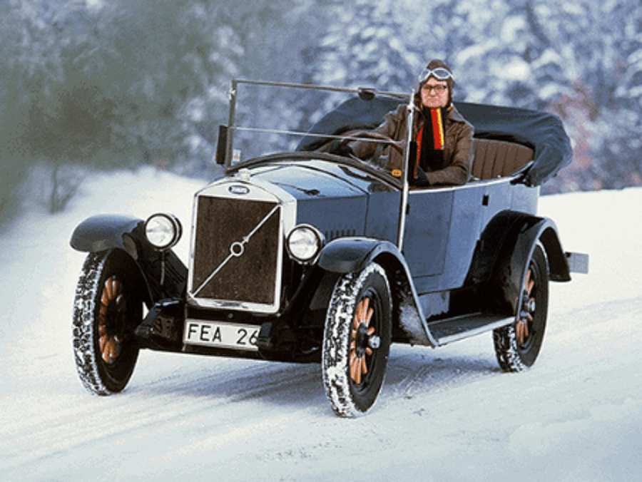 Volvo’s first vehicle was the ÖV4, nicknamed Jakob, which was produced between 1927 and 1929. Its engine was an in-line 4 cylinder with side valves and produced a whopping 28 brake horsepower. The body was built on an ash and beech frame which was covered with sheet metal. There was only one colour combination for Jakob and that was dark blue with black wings.